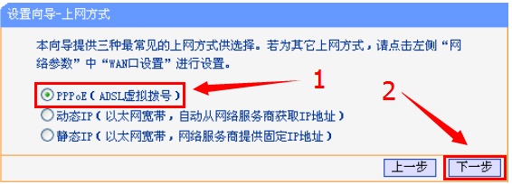 5、選擇“PPPOE(ADSL虛擬撥號)”——>“下一步”。