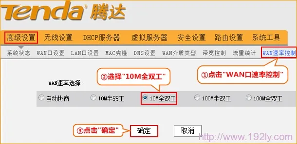 解決方法:將路由器WAN口速率調(diào)整為10M全雙工模式。