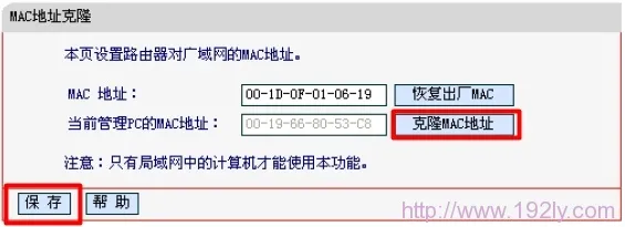 2、若寬帶運(yùn)營(yíng)商不提供MAC地址解綁服務(wù),則可以在水星路由器上啟用MAC地址克隆功能,以此繞過(guò)運(yùn)營(yíng)商的限制。