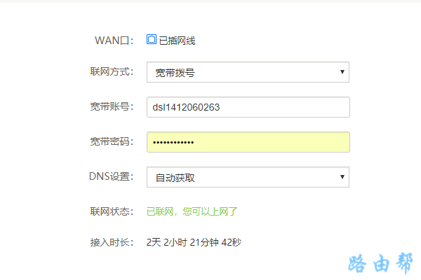 3、當(dāng)“聯(lián)網(wǎng)方式”設(shè)定為寬帶撥號(hào)時(shí),務(wù)必在相應(yīng)頁(yè)面內(nèi)輸入運(yùn)營(yíng)商提供的寬帶賬號(hào)和密碼。任何錯(cuò)誤都將導(dǎo)致無(wú)法上網(wǎng)。