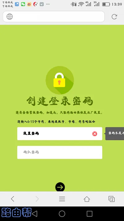 3. 打開手機(jī)自帶的瀏覽器,在地址欄輸入“falogin.cn”,這將引導(dǎo)您進(jìn)入迅捷fw325r路由器的設(shè)置界面。根據(jù)提示信息,首先創(chuàng)建一個(gè)用于登錄的密碼,如下圖所示。