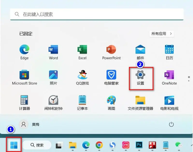 (1)點擊開始菜單按鈕——>選擇“設(shè)置”。
