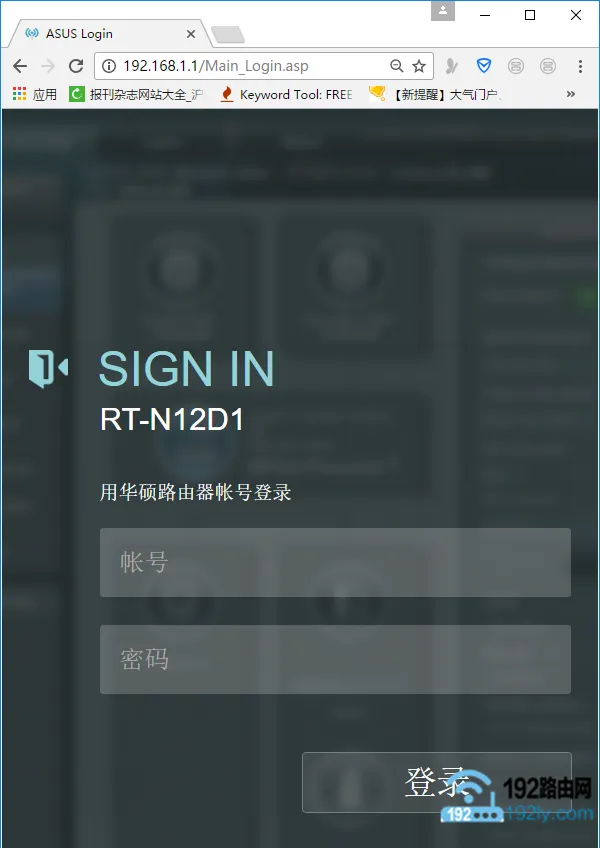 在瀏覽器中輸入:192.168.1.1 或者 router.asus.com——>輸入“用戶名”、“密碼”,登錄到這臺(tái)華碩路由器的設(shè)置頁面。