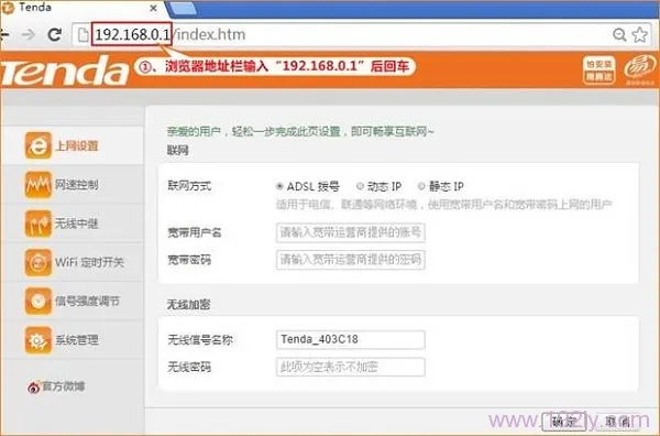 1、在瀏覽器地址欄內(nèi)輸入:192.168.0.1 并按下回車鍵,進(jìn)入騰達(dá)FH456路由器的管理頁(yè)面(若無(wú)法訪問(wèn)192.168.0.1,請(qǐng)參考: