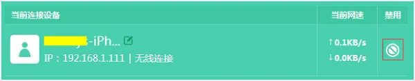 6、對于需要阻止某臺設備訪問的情況,只需在對應條目旁點擊禁用圖標即可實現(xiàn),具體效果如下圖: