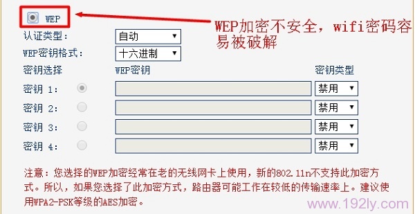 路由器通常提供WEP、WPA/WPA2兩種加密方式,其中WEP加密方式的安全性極低,在窮舉算法面前,一般幾分鐘內(nèi)就能破解密碼。因此,建議大家在配置WiFi加密時(shí),不要選用WEP這種方式;如今許多路由器已取消了這一選項(xiàng)。