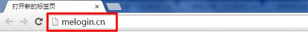 1、在瀏覽器的地址欄中輸入:melogin.cn,隨后按下回車鍵(如果輸入后無法打開管理界面,請查閱相關教程: