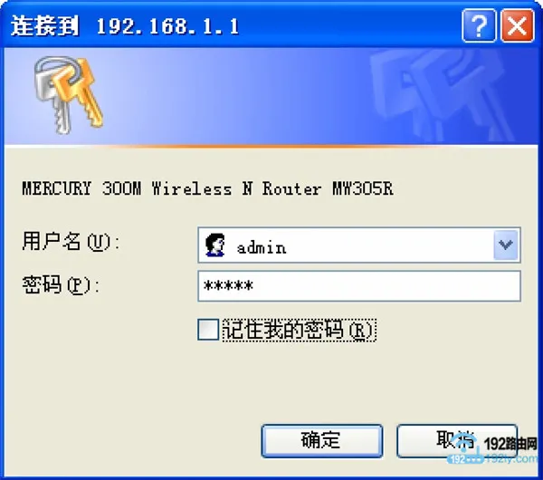 在瀏覽器中輸入:192.168.1.1,打開(kāi)登錄頁(yè)面——>在“用戶名”與“密碼”框中填入:admin——>點(diǎn)擊“確定”鍵,進(jìn)入舊版水星路由器的設(shè)置頁(yè)面。