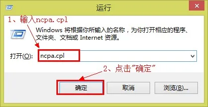 (2)在運行窗口中輸入ncpa.cpl,然后點擊“確定”按鈕,即可進入網絡連接配置頁面。