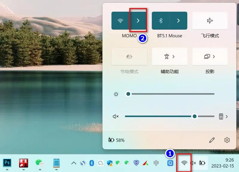 1. 點擊屏幕右下角的WiFi圖標(biāo),展開菜單后點擊“>”,找到“隱藏網(wǎng)絡(luò)”。