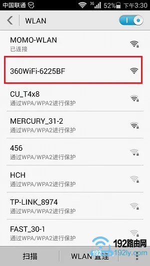 3、手機(jī)連接360路由器的wifi信號(hào)
