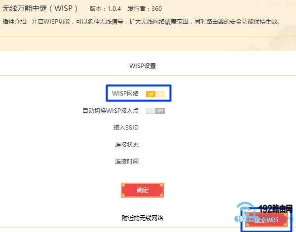 “WISP網(wǎng)絡(luò)”選擇:?jiǎn)⒂谩?gt;點(diǎn)擊“搜索WiFi”