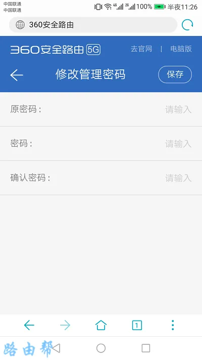 在出現(xiàn)的頁面中,輸入當(dāng)前管理密碼并設(shè)定新密碼即可,如下圖所示。