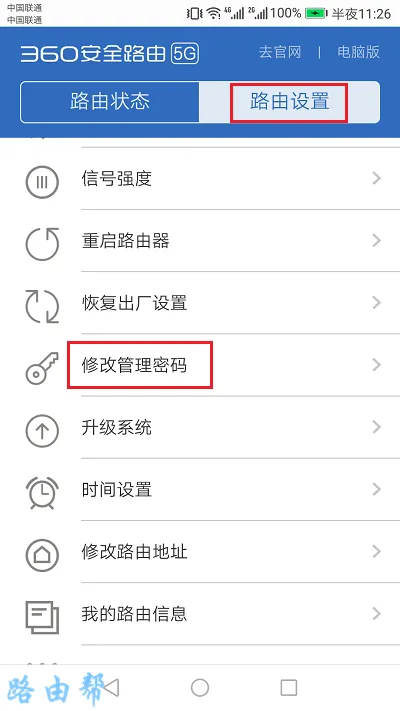 3、如需更改管理密碼,可在“路由設(shè)置”菜單下找到“修改管理密碼”的選項并開啟。