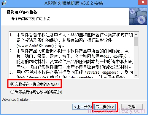 2、勾選“我同意許可協(xié)議中的條款”后點擊“下一步”。