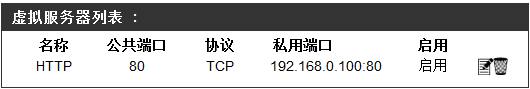 3、您可以在虛擬服務(wù)器列表中查看剛剛設(shè)置好的端口映射規(guī)則: