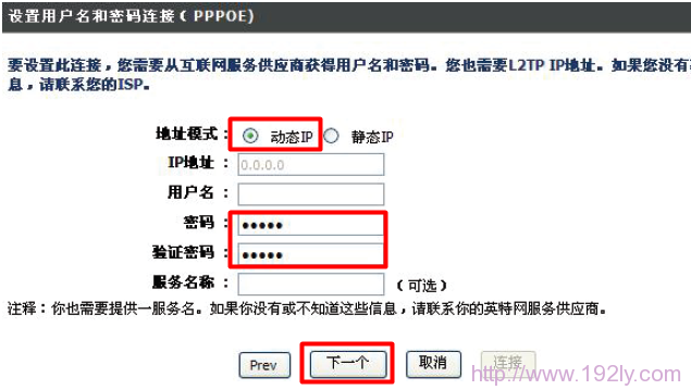 6、選擇“用戶名/密碼連接(PPPoE)”——點擊“下一步”.