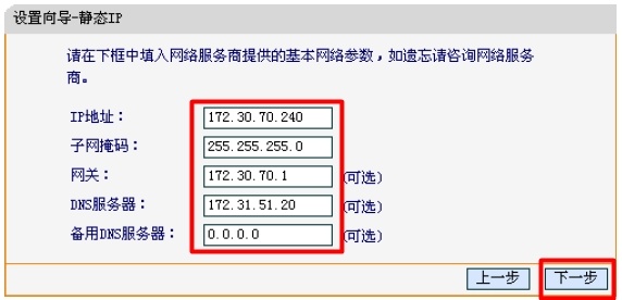 按照寬帶服務商提供的IP地址等相關(guān)信息填寫相關(guān)內(nèi)容。