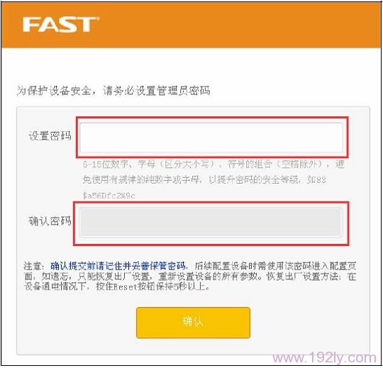 2、在出現(xiàn)的界面中設(shè)定登錄密碼,確認(rèn)無誤后點(diǎn)擊確定。(FW305R+路由器無默認(rèn)初始密碼,需由用戶自行設(shè)置)。