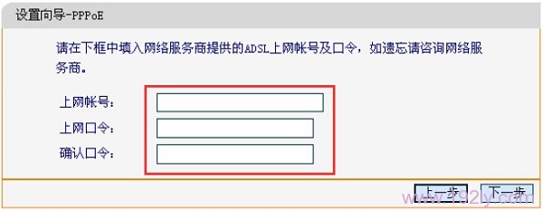 輸入寬帶運營商提供的寬帶帳號和密碼——>點擊“下一步”。