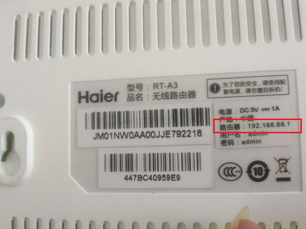 請務(wù)必根據(jù)您自己的海爾路由器底部標(biāo)簽(銘牌)上提供的信息來確認(rèn)登錄地址,無論是192.168.1.1還是192.168.68.1,均以標(biāo)簽上的地址為準(zhǔn)。