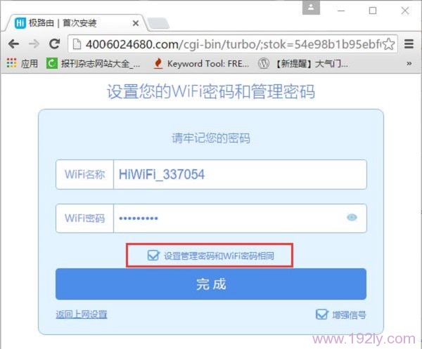 將WiFi密碼同步設(shè)置為極路由后臺(tái)登錄密碼