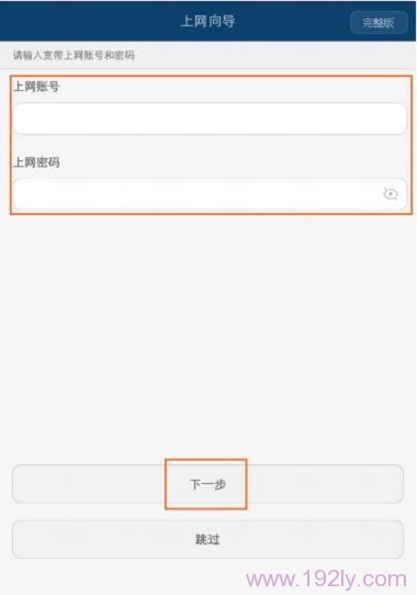 2、輸入從寬帶服務提供商獲取的“上網(wǎng)賬號”及“上網(wǎng)密碼”,然后點擊“下一步”。