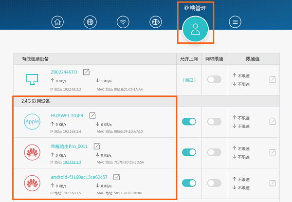 問(wèn):我家里的華為榮耀路由Pro最近網(wǎng)速變慢了,懷疑是無(wú)線網(wǎng)絡(luò)被別人使用了,請(qǐng)問(wèn)怎么判斷榮耀路由Pro有沒(méi)有被蹭網(wǎng)呢?
