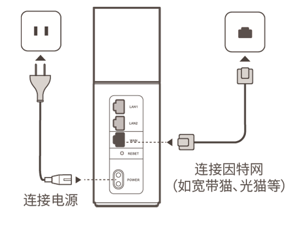 2、WAN接口用于連接光貓(寬帶貓、寬帶網(wǎng)線)。