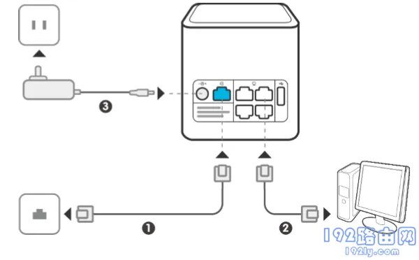 2、將家中電腦與榮耀X1路由器的任一1號或2號接口相連。