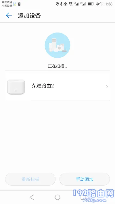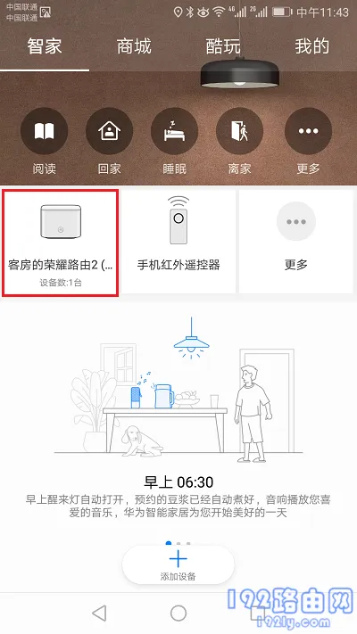 2、打開手機(jī)上的智能家居APP,APP會(huì)自動(dòng)檢測(cè)網(wǎng)絡(luò)中的榮耀路由器。