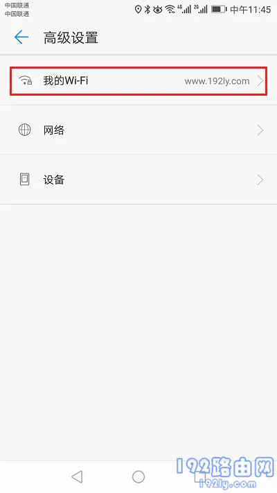 鴻哥用于演示的這臺(tái)榮耀路由2,其WiFi名稱是:www.192ly.com,因此我需要讓手機(jī)連接到 www.192ly.com 的WiFi信號(hào),如下圖所示。