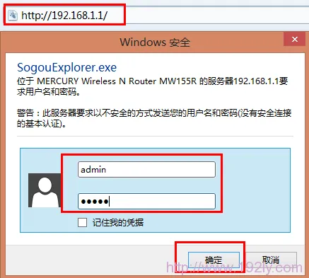 1、在瀏覽器地址欄輸入“http://192.168.1.1”,并在彈出的窗口中輸入用戶名與密碼登錄。