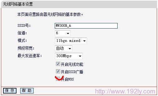 2、激活WDS功能:重啟完成后,利用更新后的LAN口IP地址重新訪問無線路由器A,在“無線設置”——>“基本設置”中勾選“開啟WDS”選項。