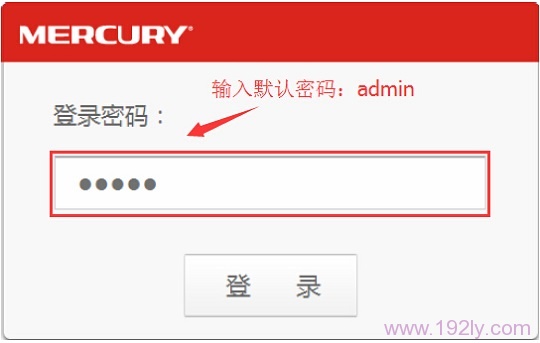 輸入水星MW300RM的默認(rèn)密碼:admin