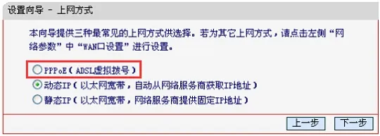 ADSL撥號(hào)上網(wǎng)設(shè)置:選擇“PPPoE(ADSL虛擬撥號(hào))”——>點(diǎn)擊“下一步”