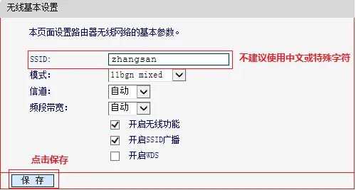 (2)、“無(wú)線名稱”建議使用數(shù)字和字母組合,避免使用中文。