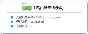 2、接著記錄下主路由器的無(wú)線名稱、無(wú)線密碼以及信道。