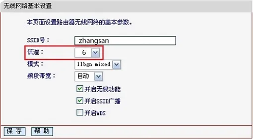 “信道”通常位于無線設(shè)置選項(xiàng)下?!靶诺馈蹦J(rèn)是自動(dòng)選擇的,請(qǐng)手動(dòng)選擇一個(gè)具體的值,如本例中的6,然后保存更改即可。