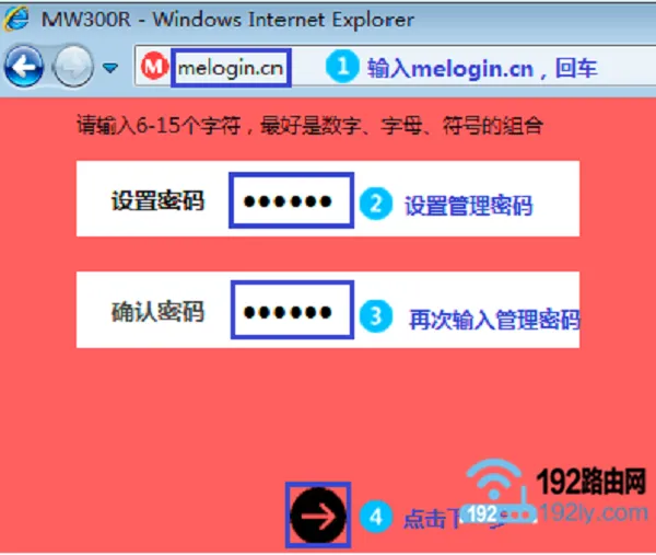 打開電腦上的任何一款網(wǎng)頁瀏覽器,在地址欄輸入:melogin.cn,接著按照屏幕指示設(shè)定一個新的“登錄密碼”。完成后便進(jìn)入了水星路由器的設(shè)置向?qū)ы撁妗?/p>