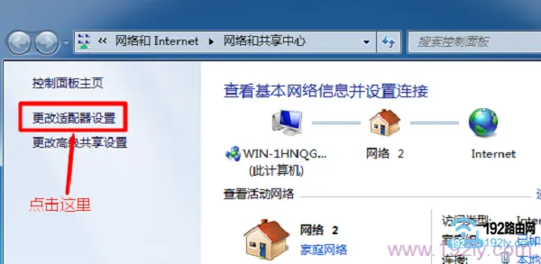 2、點(diǎn)擊左側(cè)菜單中的“更改適配器設(shè)置”選項。