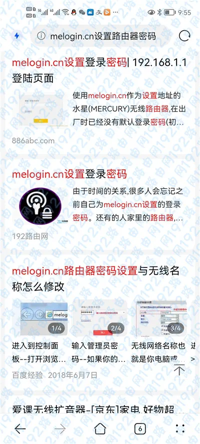 此時(shí)切勿點(diǎn)擊這些推薦選項(xiàng),必須手動(dòng)完整輸入melogin.cn;一旦選擇了推薦項(xiàng),將會(huì)跳轉(zhuǎn)至搜索頁(yè)面,如下圖所示。