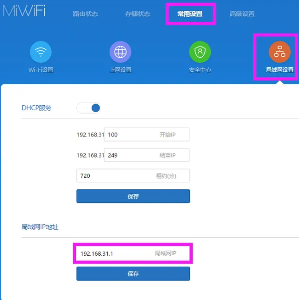 (3)、除非有特別需求,否則不推薦大家修改小米路由器的IP地址,直接使用默認(rèn)的192.168.31.1進(jìn)行管理即可。