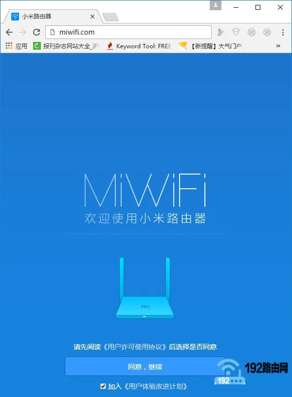 2、打開(kāi)電腦上的瀏覽器,在瀏覽器中輸入:miwifi.com,打開(kāi)小米路由器的設(shè)置頁(yè)面。