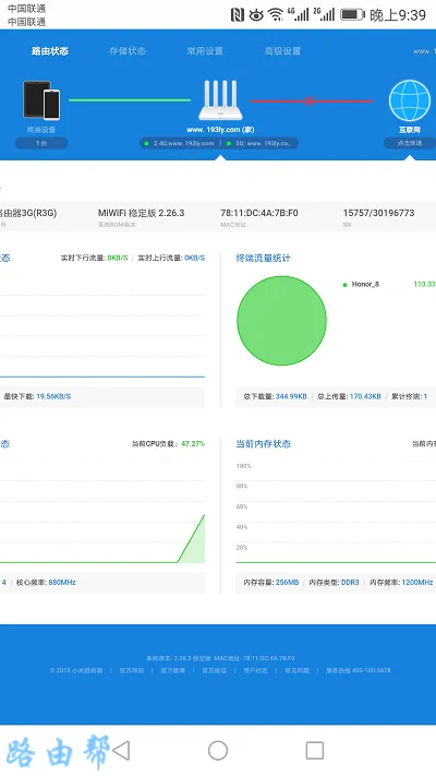 2、此外,你也可以用手機登錄小米路由器4C的管理頁面,查看“路由狀態(tài)”下的提示信息,以此判斷路由器設置是否成功,如下圖所示。