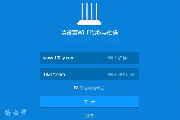 3、依據頁面指引設定Redmi路由器AC2100的Wi-Fi名稱及其對應的密碼。