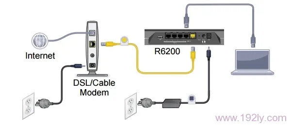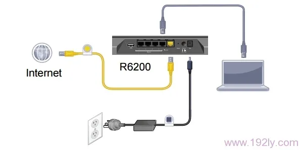 3、直接使用寬帶網(wǎng)線接入:在這種情況下,僅需一根網(wǎng)線,首先將寬帶供應商提供的入戶網(wǎng)線插入NETGEAR R6220路由器的WAN端口,然后將另一端連接到電腦上,并插入路由器的LAN端口(1至4號接口任選其一)。