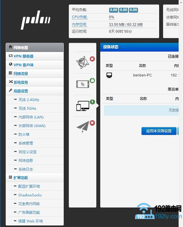 重啟設(shè)備后,在瀏覽器中輸入p.to或192.168.2.1訪問登錄頁面,使用密碼:tianbaoha 登錄。若能正常進(jìn)入設(shè)置界面,則說明breed和ssh已成功安裝。