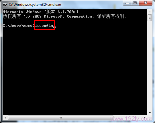 (3)、在cmd窗口輸入命令:ipconfig,按回車鍵。