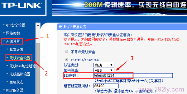 可通過登錄無線路由器管理頁面,在“無線設(shè)置”——>“無線安全設(shè)置”中檢查“PSK密碼”,此密碼即為WiFi密碼。